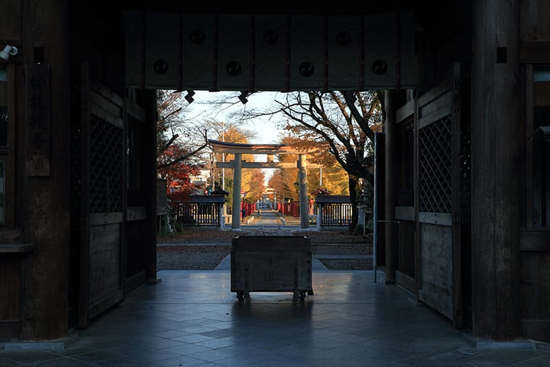 秋の境内では、燃えるような美しい紅葉が見事です。素盞嗚命(スサノオノミコト)、大己貴命(オオナムチノミコト)、誉田別命(ホンダワケノミコト)の三神を祀っています。